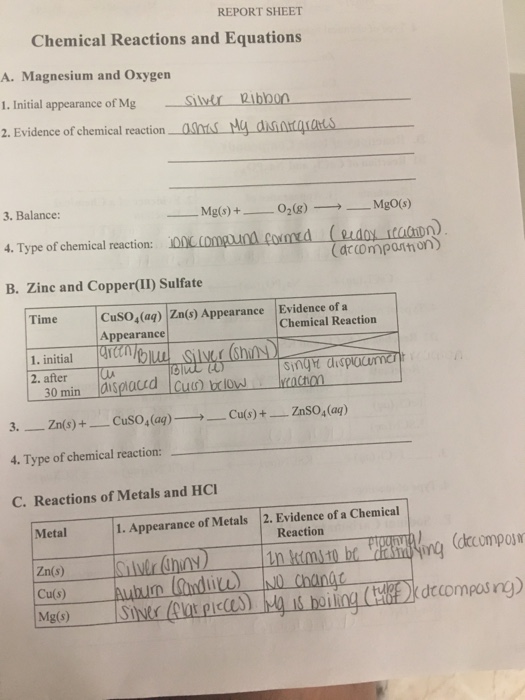 Cuso ag n of the reactions that occured.